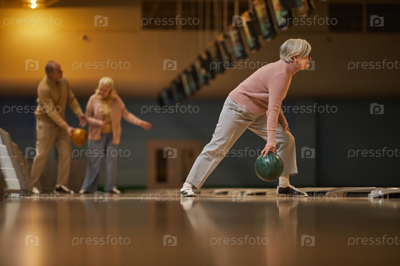 Старшая женщина, играющая в боулинг Active Side View