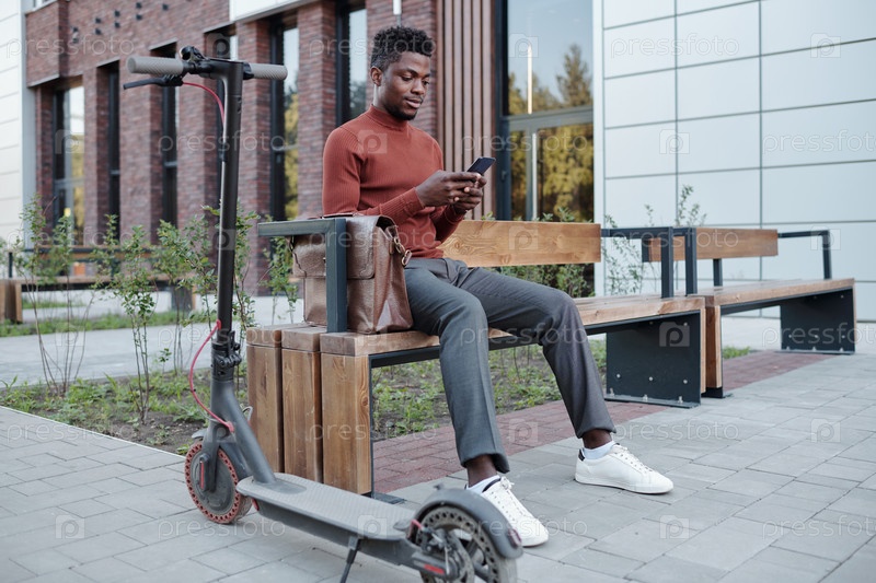 Африканский бизнесмен в элегантной повседневной одежде с помощью смартфона