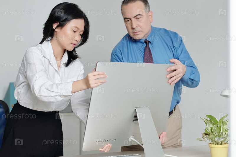 Мужчина помогает коллеге с компьютером