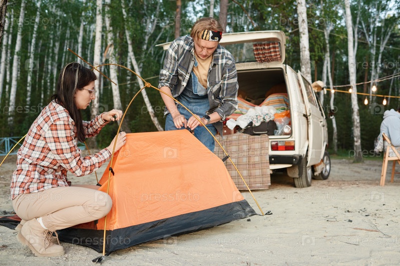 Люди устанавливают палатки