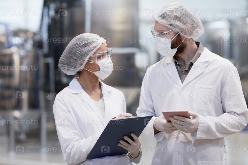 Два работника на фармацевтической фабрике