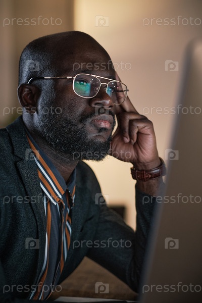 Пенсивный бизнесмен, работающий на компьютере