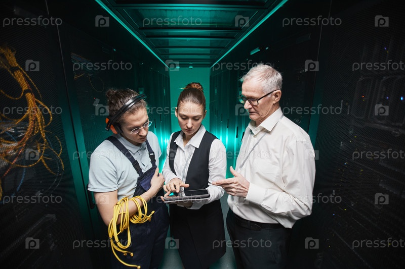 Люди, работающие в серверной комнате