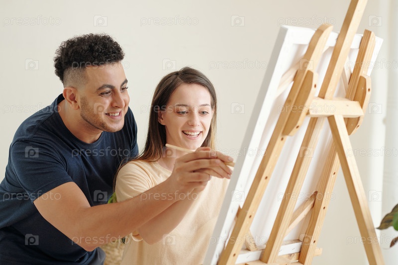 Пара наслаждается живописью на холсте