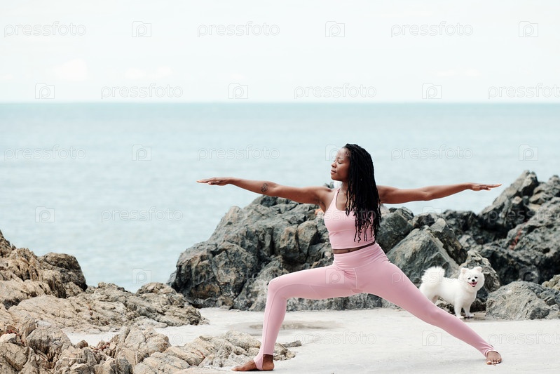 Doing Warrior Asana Pose Woman Делая позу женщины-воина