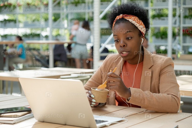 Деловая женщина, работающая во время обеда