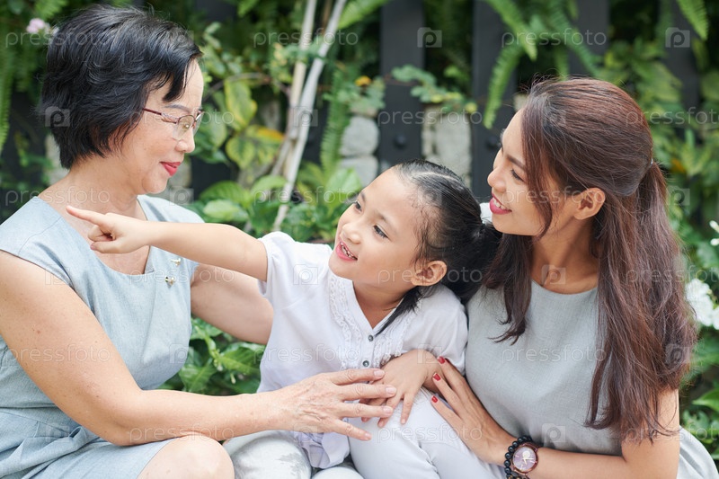Мать и бабушка играют с девочкой