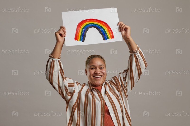 Современная женщина смешанной расы празднует ЛГБТК