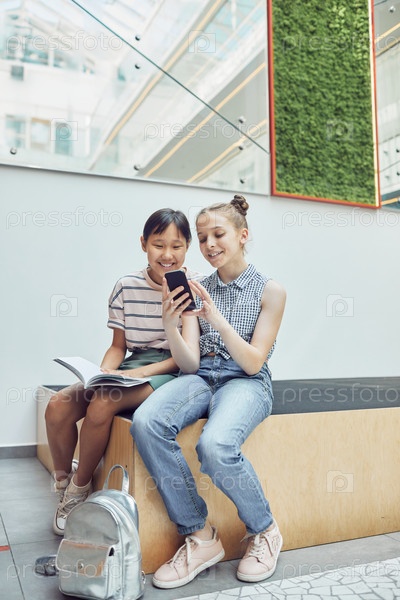 Девочки, использующие смартфоны в школе
