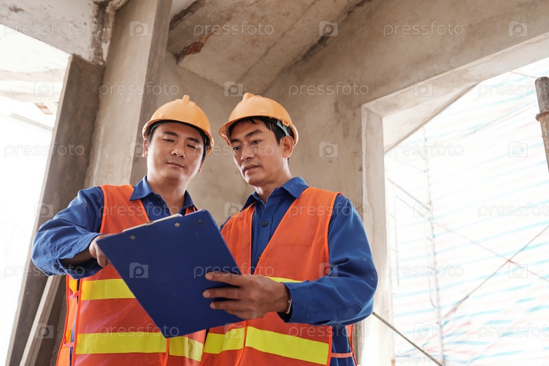 Подрядчик проверяет отчет о ходе строительства