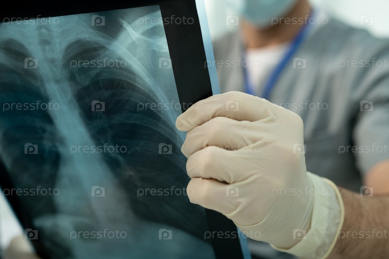 Врач анализирует рентгеновское изображение легких