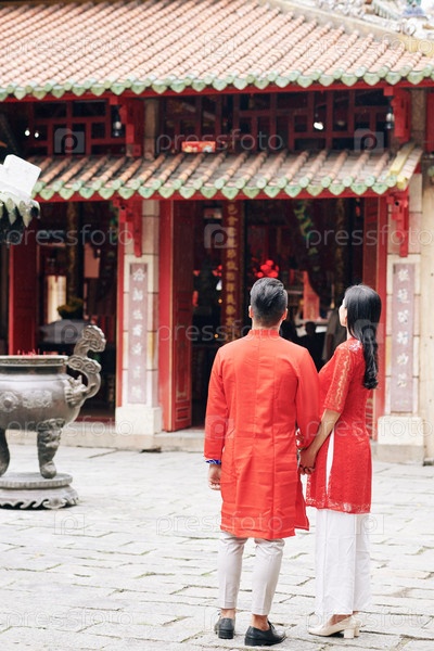 Пара смотрит на храм