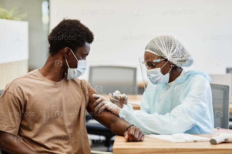 Человек получает второй укол вакцины