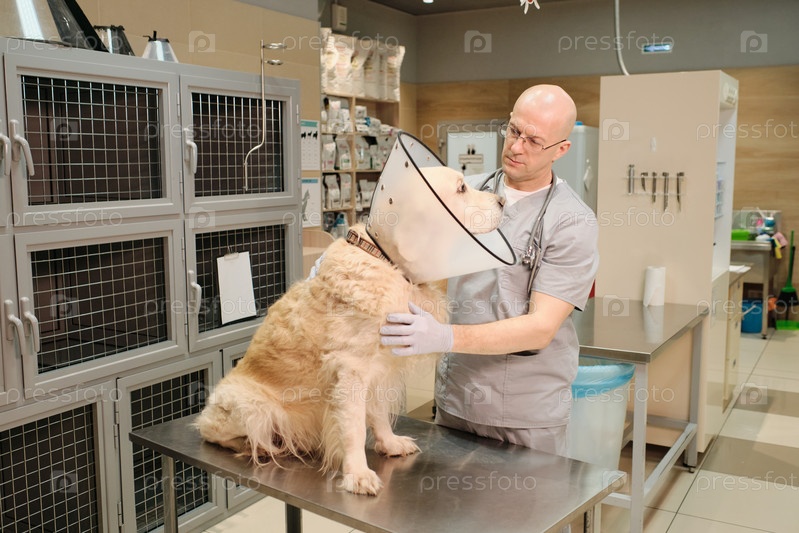Ветеринар осматривает собаку