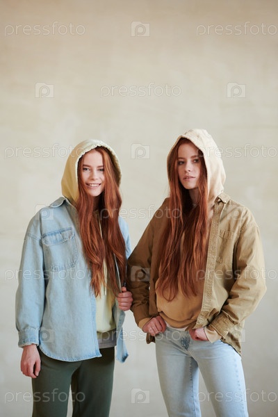 Стильные молодые близнецы с студийным снимком