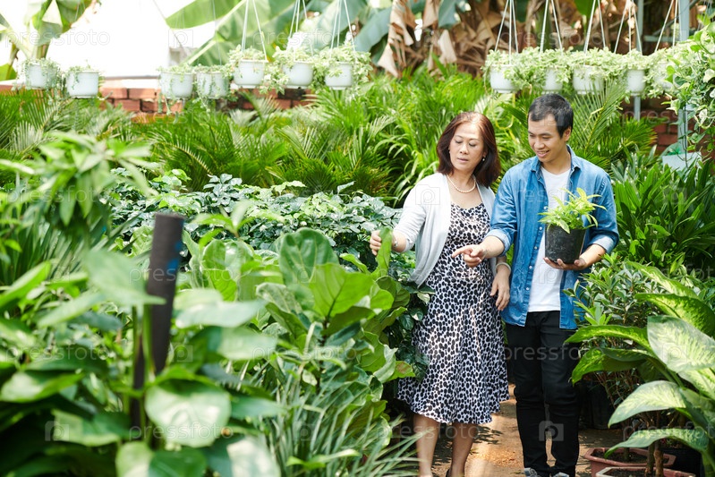 Мужчина, помогающий клиенту с покупкой цветов