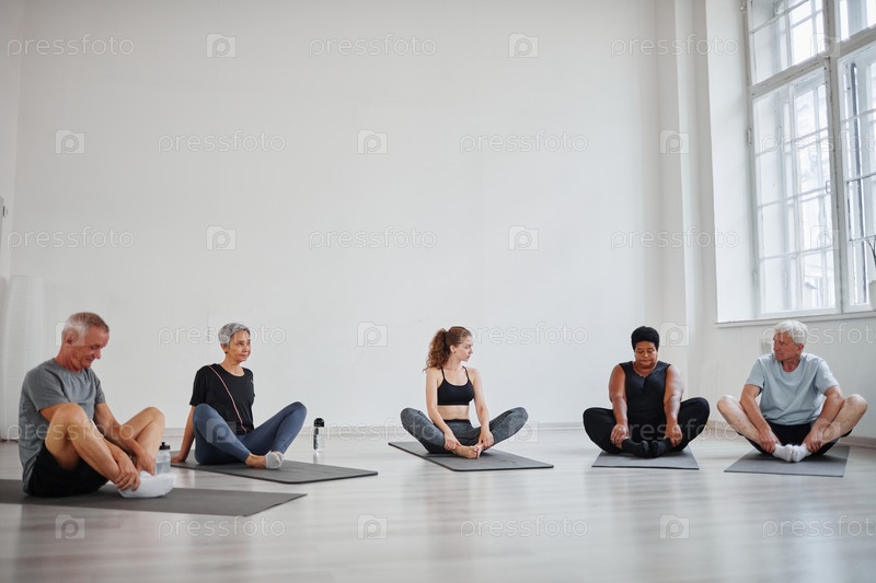 Люди медитируют во время занятий йогой