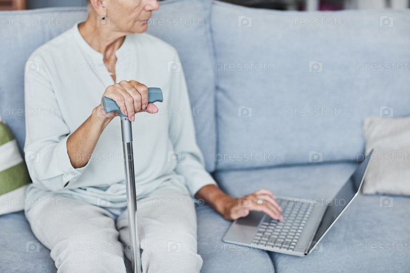 Старшая женщина, использующая ноутбук минимум