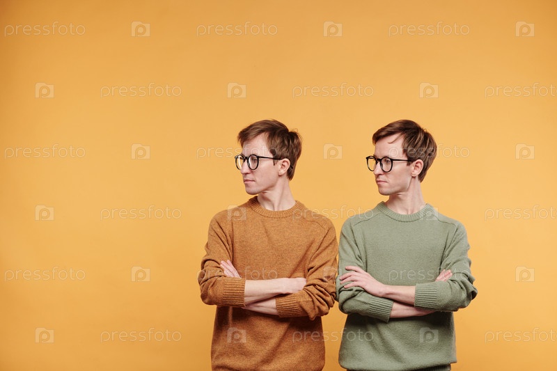 Строгие подростки в очках, смотрящие в сторону