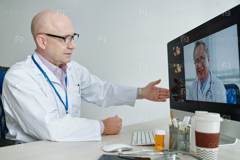 Врачи разговаривают онлайн во время конференции