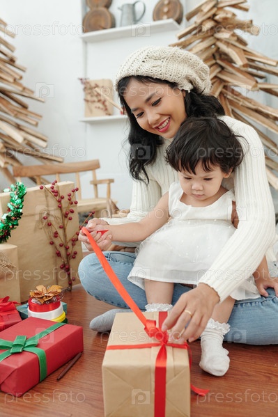 Мать и дочь открывающий подарок