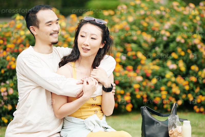 Китайский мужчина обнимает свою девушку