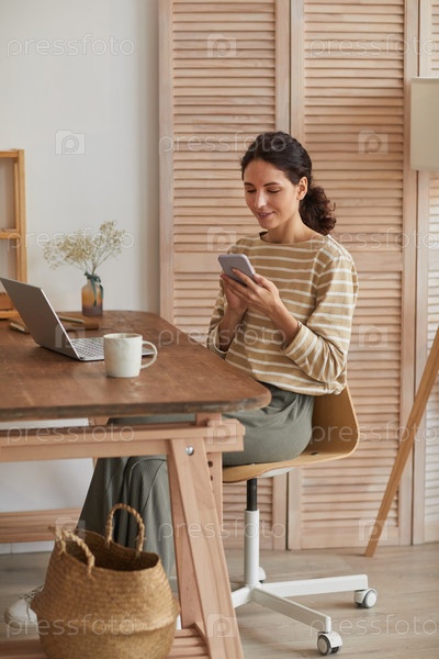 Портрет молодой женщины, работающей дома