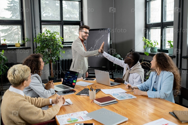 Успешный тренер дает пятерку молодому африканскому бизнесмену