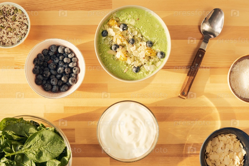 Дизайн нескольких мисок со свежими ингредиентами для смузи
