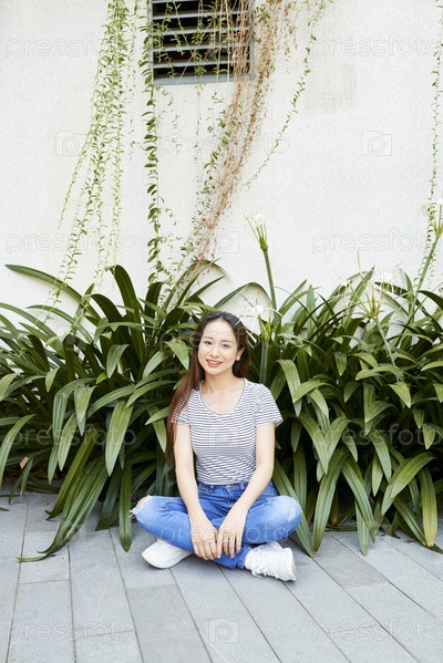 Улыбающаяся женщина, сидящая на земле