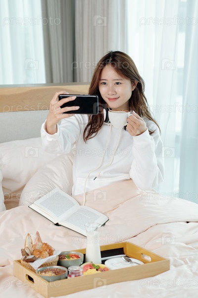 Женщина фотографирует с чашечкой кофе