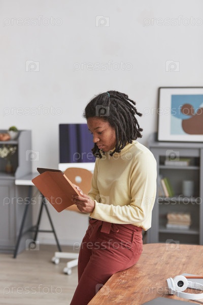 Реальная афроамериканская женщина использует дифитальную таблетку