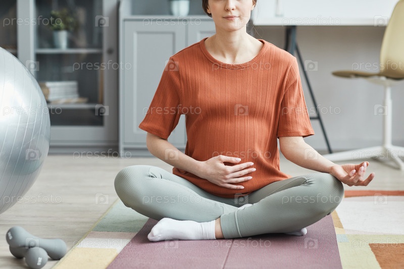Беременная женщина занимается йогой