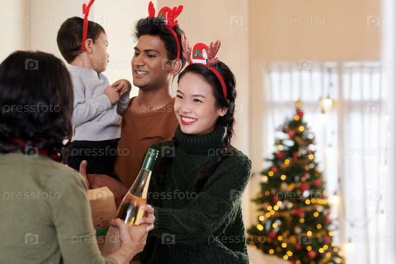 Женщина встречает мать, которая пришла на Рождество