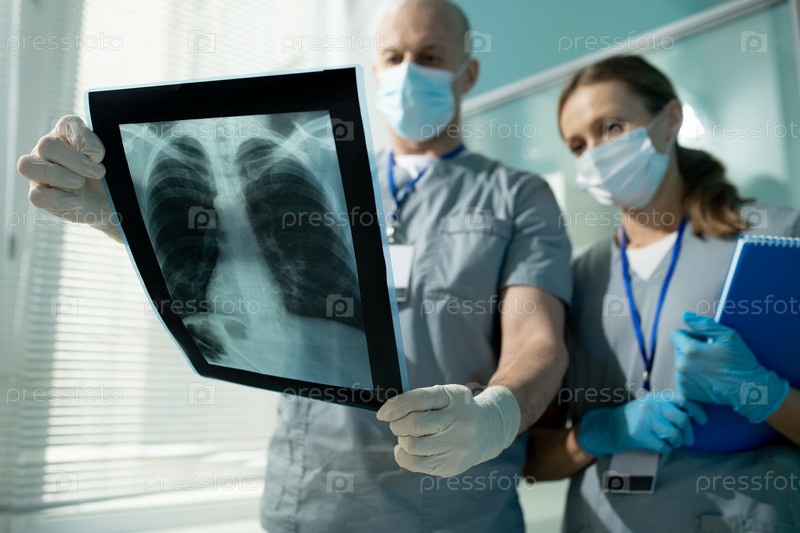 Обсуждаю рентгеновское изображение легких с помощником