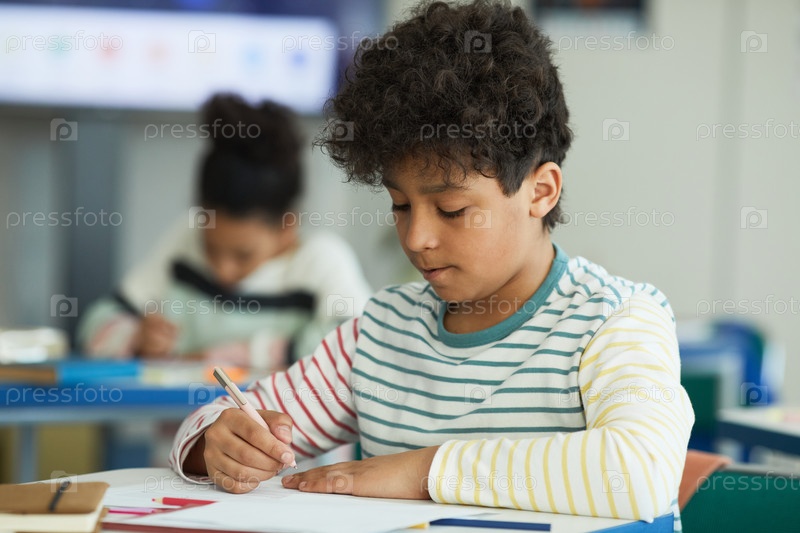 Мальчик-подросток учится в школе