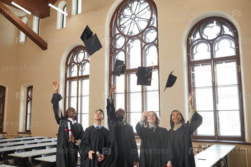 Выпускники бросают шляпы в воздух внутри помещений