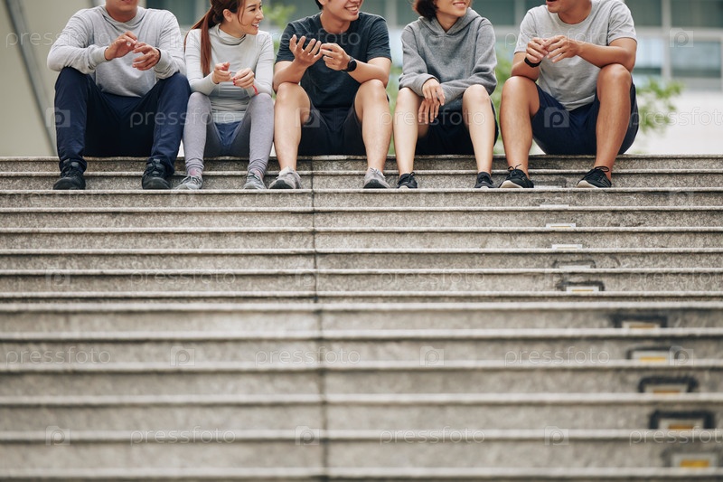 Позитивные молодые азиаты, сидящие на улице