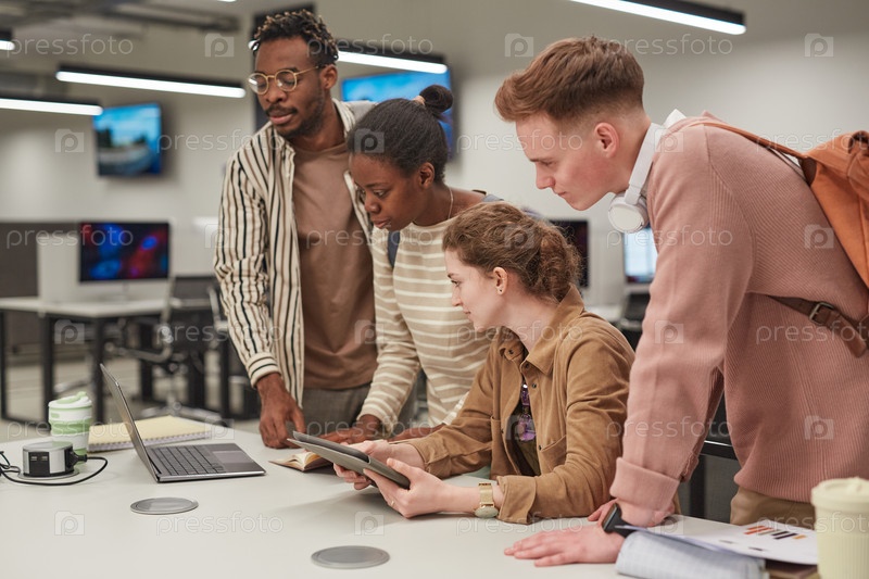 Команда студентов, работающих вместе