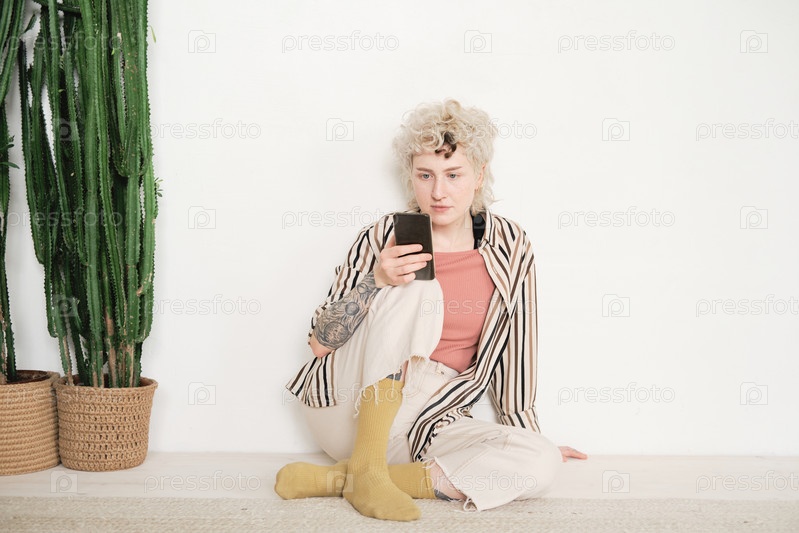 Женщина читает онлайн по телефону