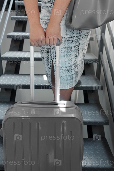 Женщина поднимает и несет багаж