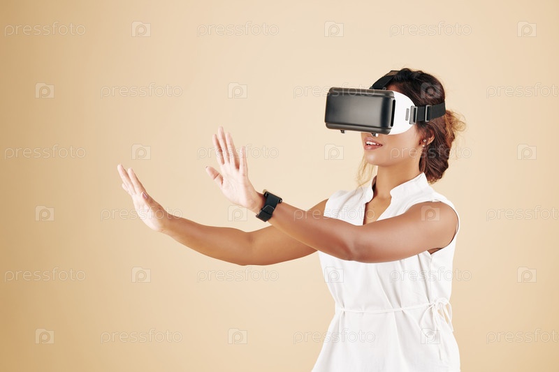 Красивая женщина в шлеме VR