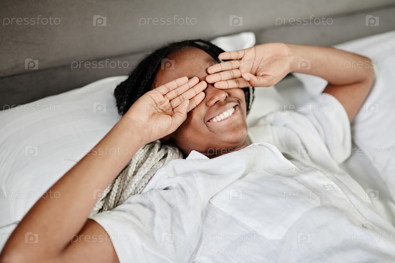 Улыбающаяся девушка просыпается утром