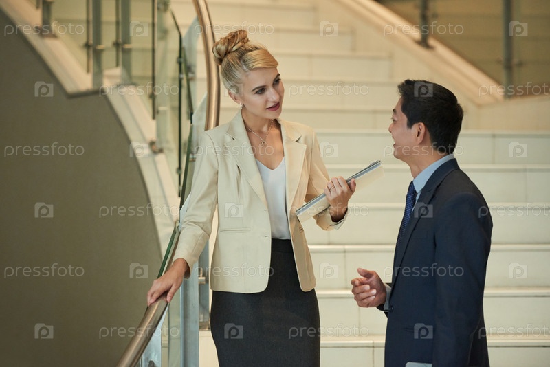 Элегантная деловая женщина, разговаривающая с коллегой