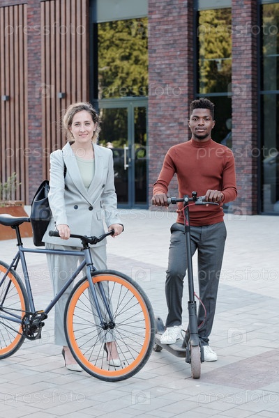 Молодые межкультурные коллеги, стоящие против здания снаружи