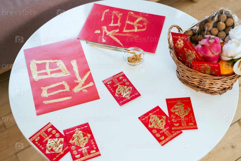Традиционные новогодние открытки и подарки на столе