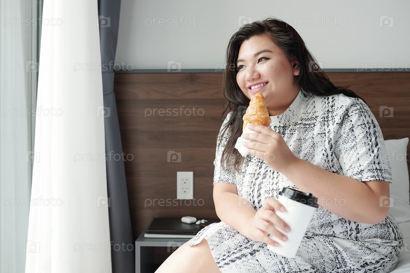 Молодая женщина завтракает
