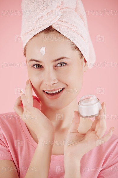 Женщина наносит деньный крем для освещения