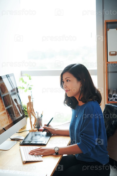 Молодая женщина, работающая со стоковыми фотографиями