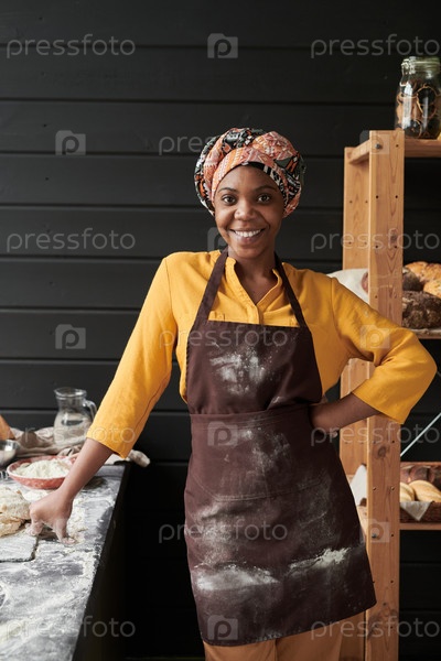 Бейкер в фартуке на кухне